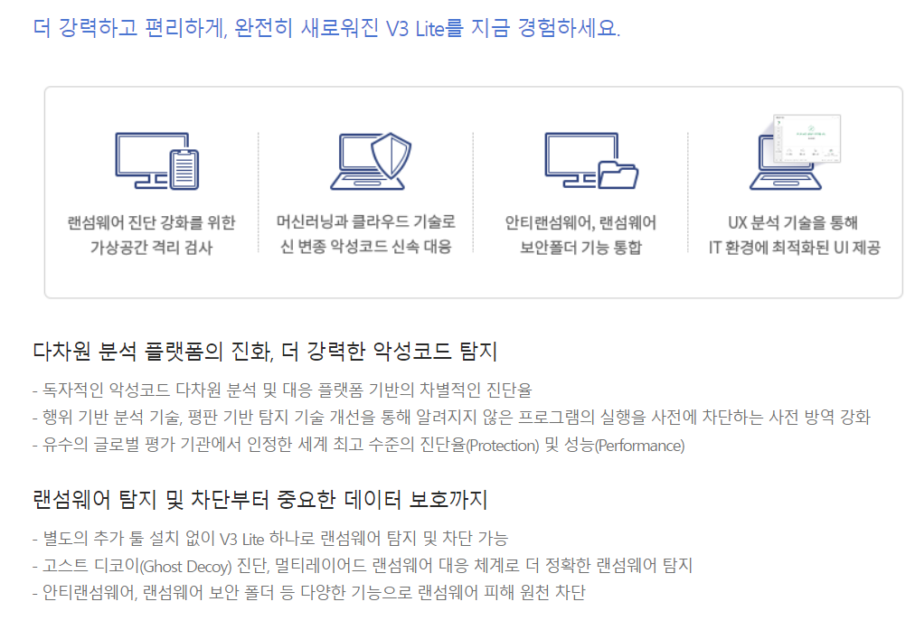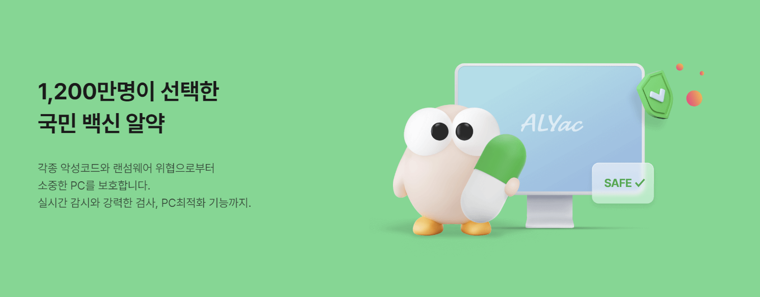 얼마전 뉴스에 랜섬웨어라고 하는 부분이 많이 기사화 되어 보도가 되고 있습니다. 컴퓨터에 침입하여 중요한 내용들을 암호화 하고 돈을 요구하는 악성프로그램들입니다. 기존 백신 프로그램으로는 차단이 불가하고 이 알약 프로그램에서는 무료임에도 불구하고 바로 랜섬웨어 까지 차단을 해주기 때문에 현재 아주 많이 사용하는 무료 백신 프로그램입니다.