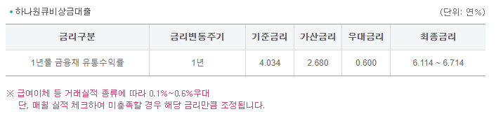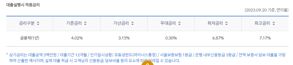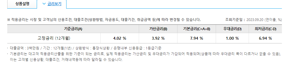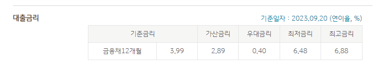 연체이자율 : 적용금리 + 연 3%(최고 연 12%)