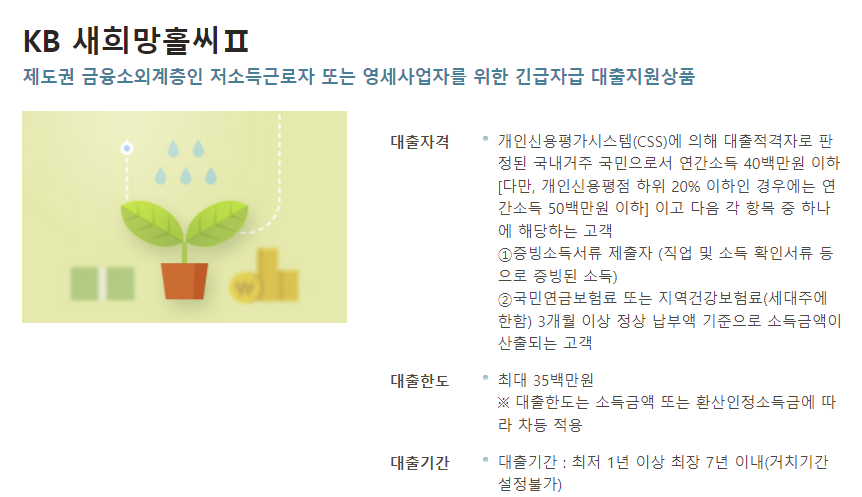 ※새희망홀씨 긴급생계자금 1년 이상 성실상환하는 경우, 500만원 범위 내에서 추가 지원