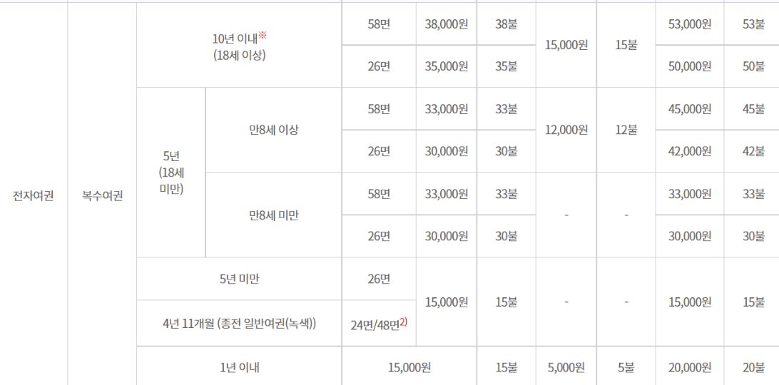 유효기간 - 1년,5년,10년 단위 (미성년자의 유효기간은 최장 5년)