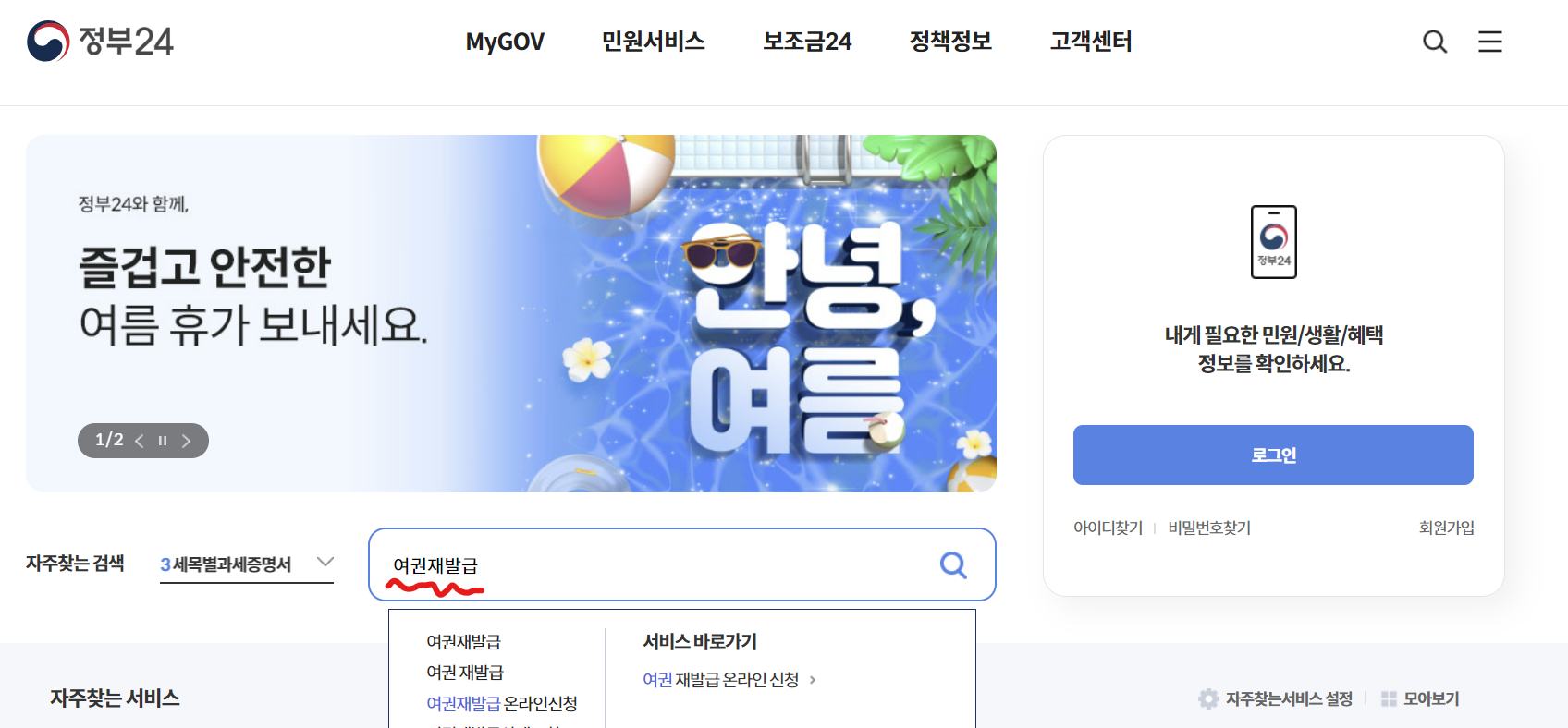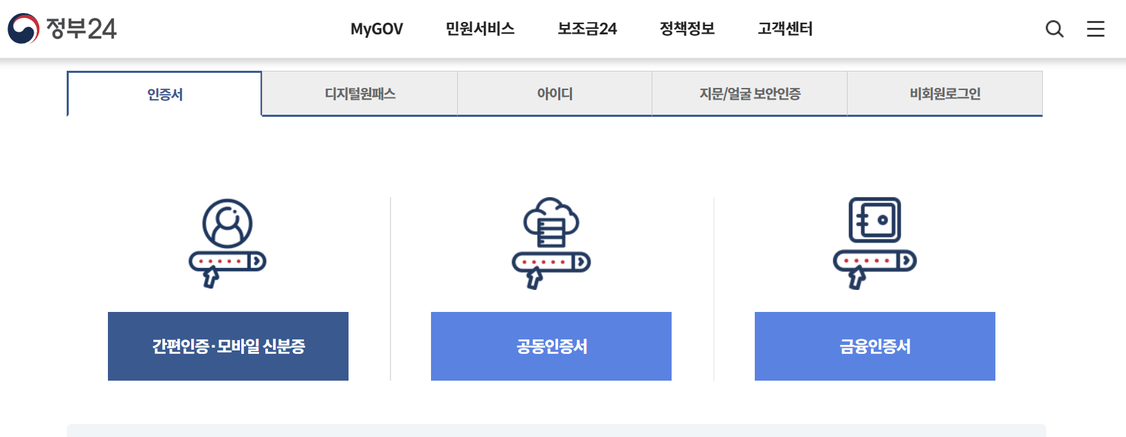 1. 아래 링크를 통해 정부 24 사이트로 이동합니다.