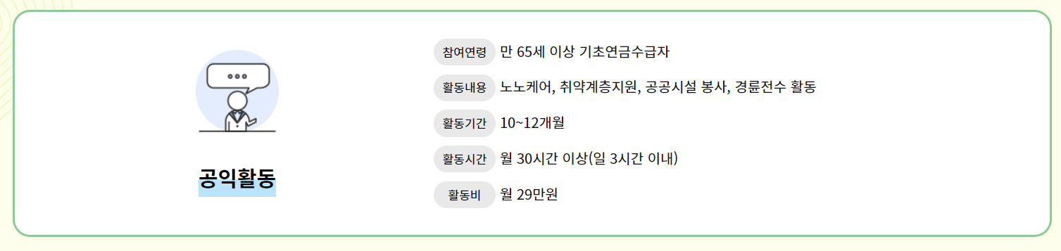 | 참여연령 | 만 65세 이상 기초연금수급자 |
