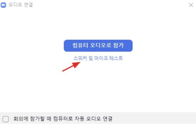 스피커와 마이크 테스트가 필요하다면 아래를 클릭하고 필요 없다면 바로 컴퓨터 오디오로 참가 버튼을 클릭하면 회의방 개설이 완료됩니다.
